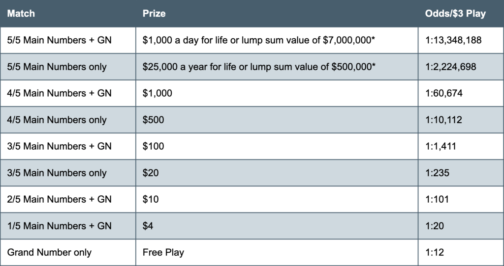 - You receive five main numbers and one Grand Number for $3.